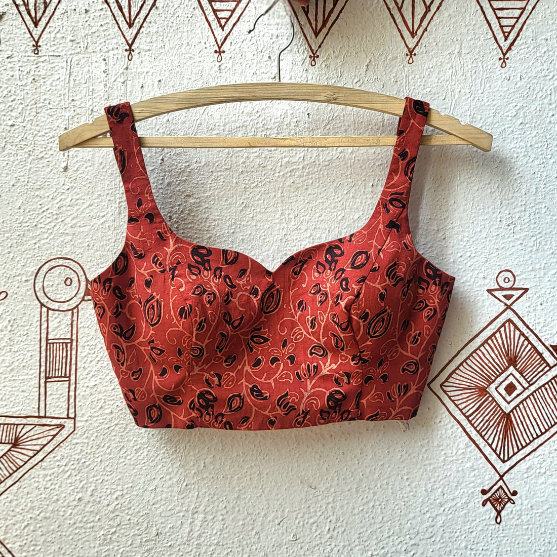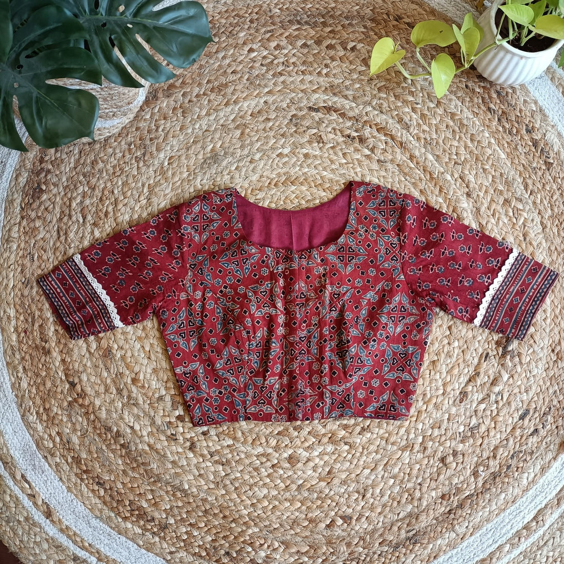 "Priya" Cotton Ajrakh Blouse Rust