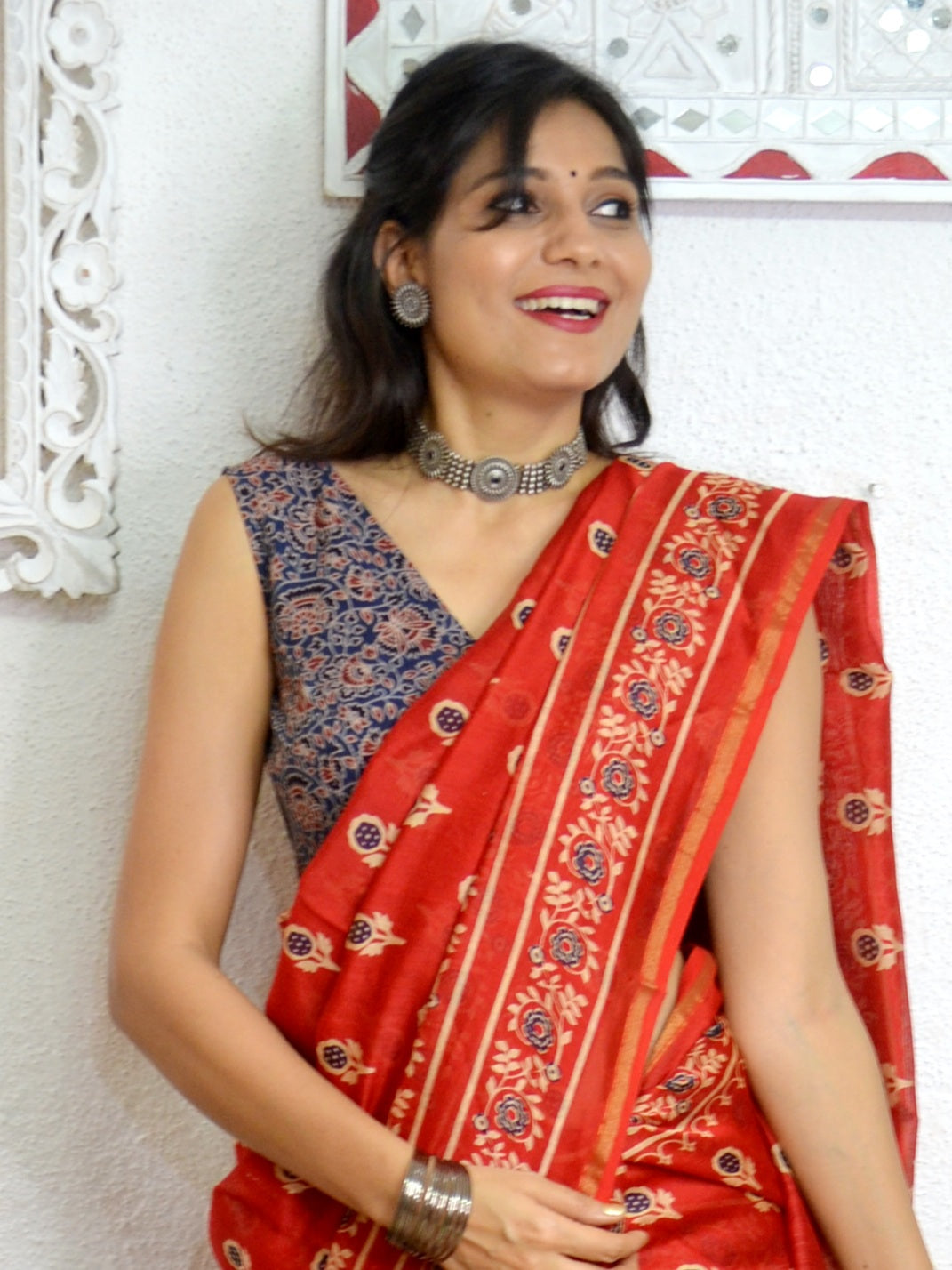 "Taara" - Hand Blocked Printed Ajrakh Blouse (Red) "Taara" - Hand Blocked Printed Ajrakh Blouse...