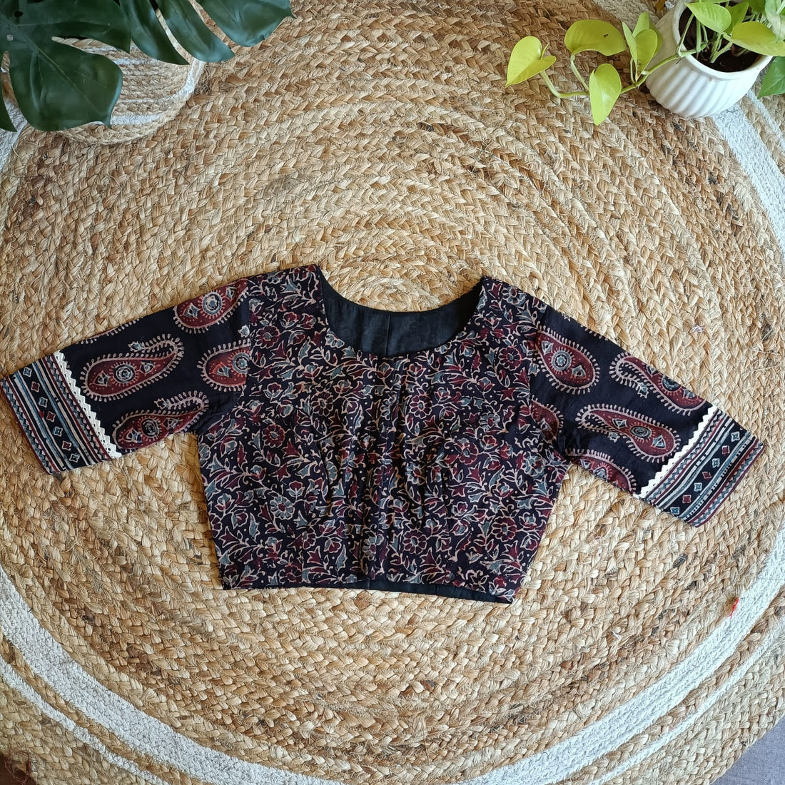 "Priya" Cotton Ajrakh Blouse Black
