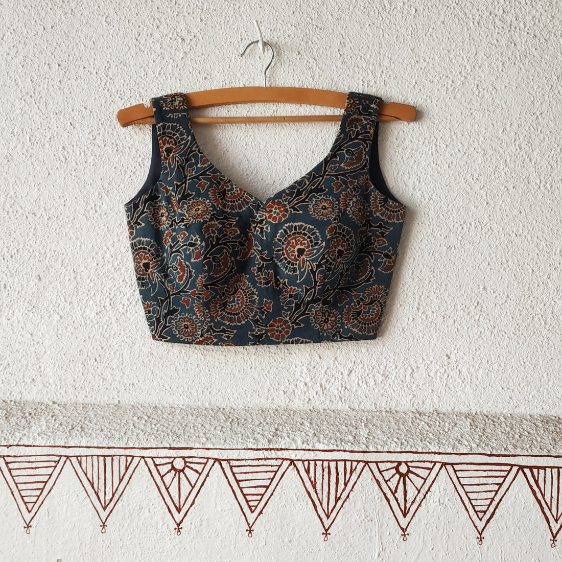 The Ajrakh Cotton summer sleeveless blouse is a stylish and breathable option for warm weather....
