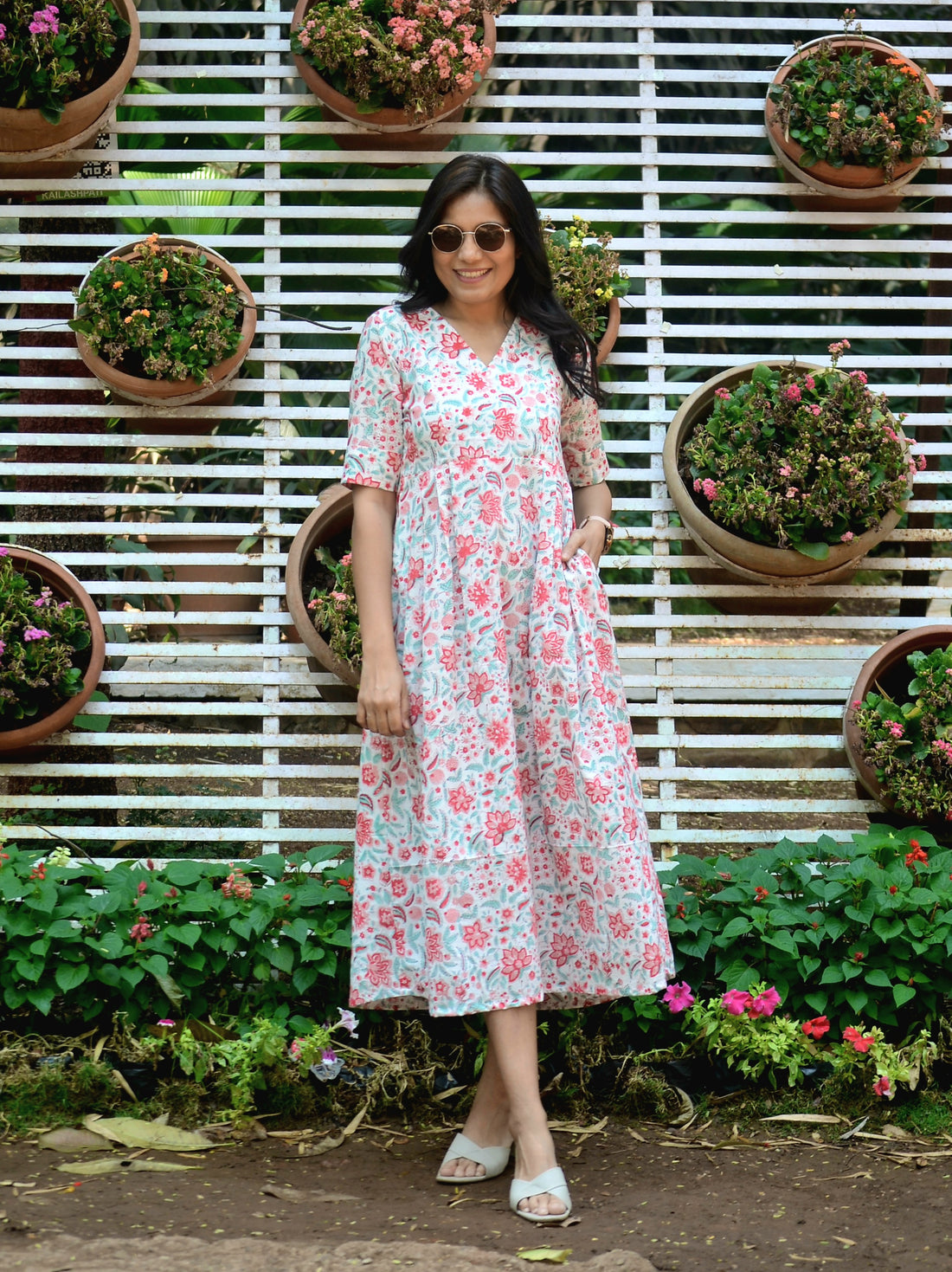 'Basant Bahar'-Cotton Block Printed Dress White