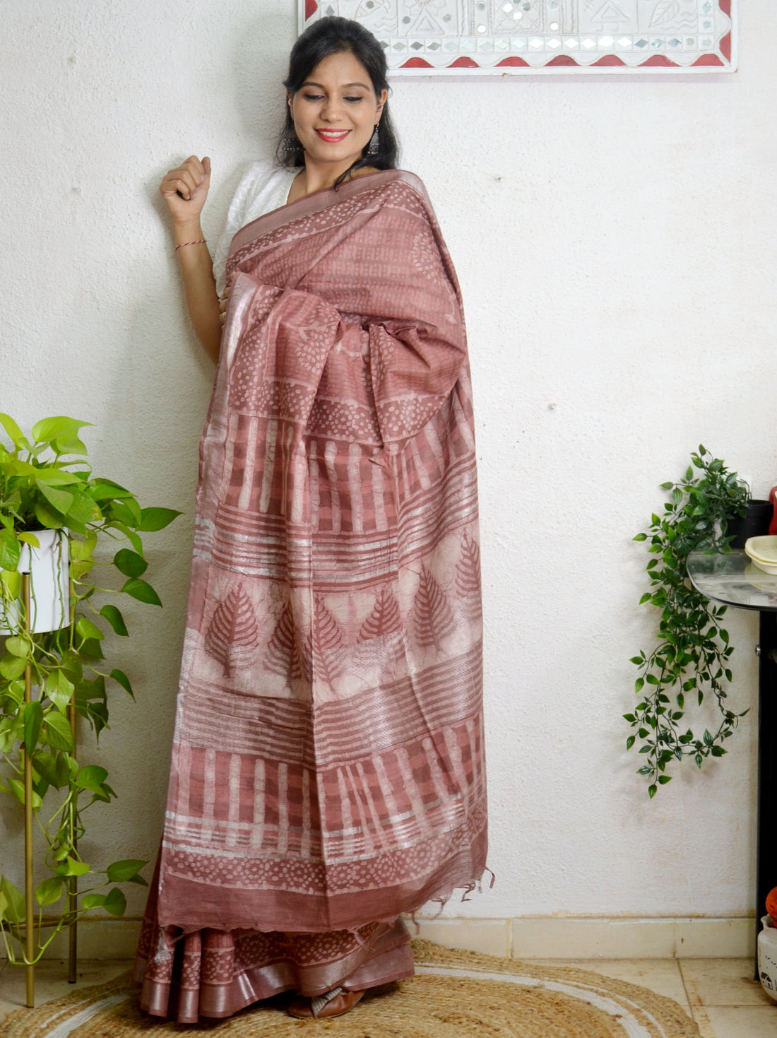 Cotton Linen Block Printed Saree4