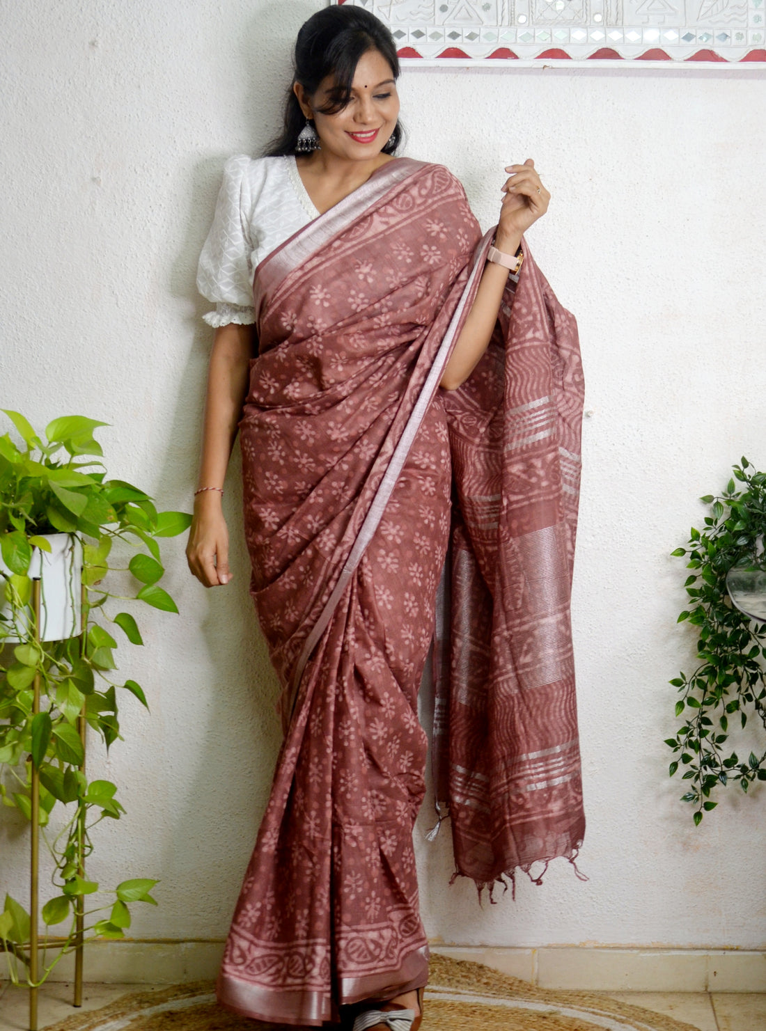 Cotton Linen Block Printed Saree24