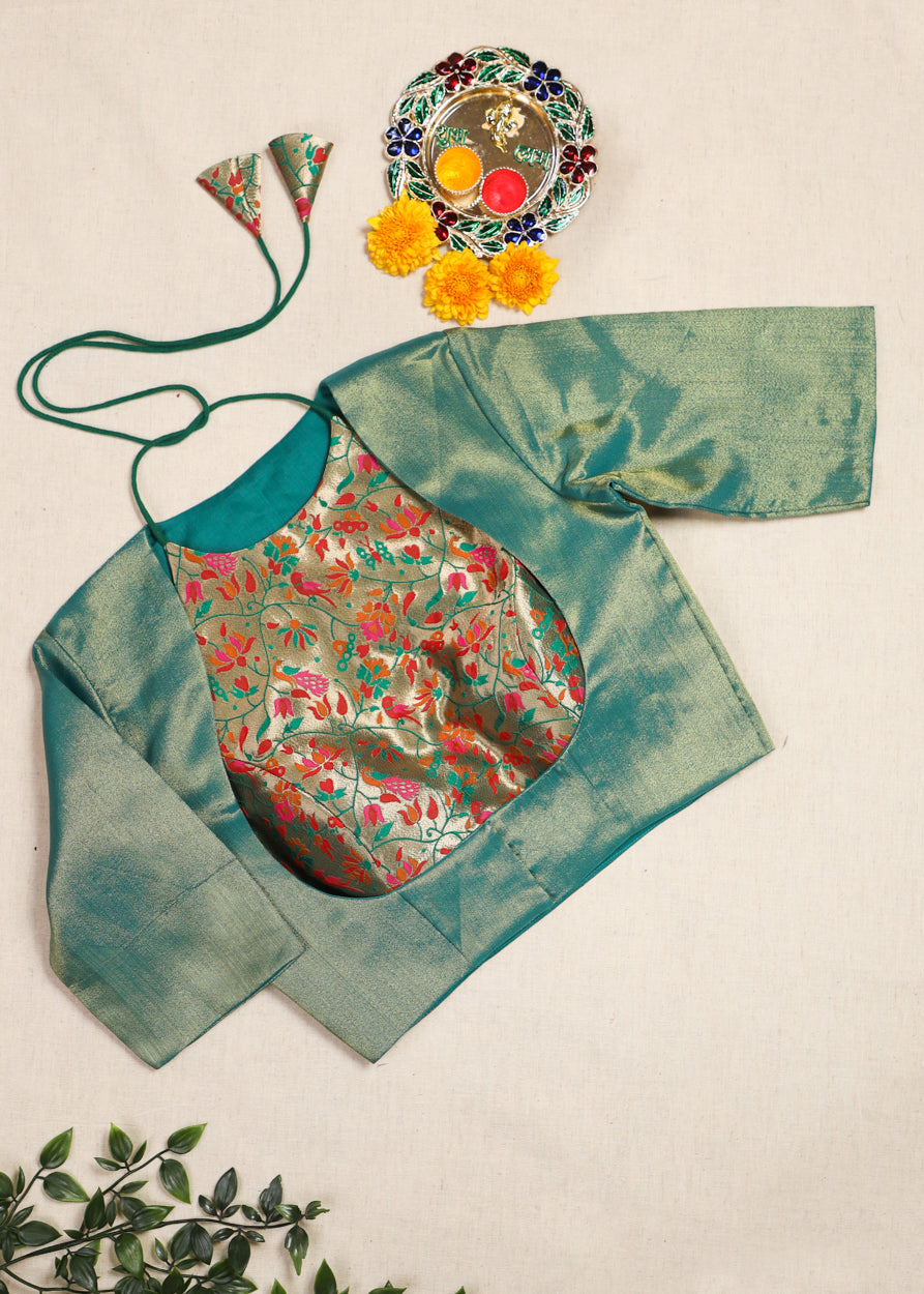 Rang dori- Paithani Blouse Set Green