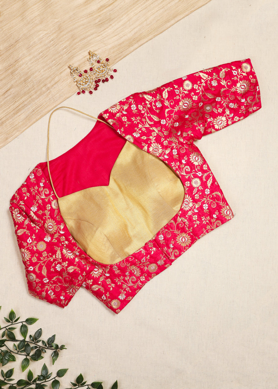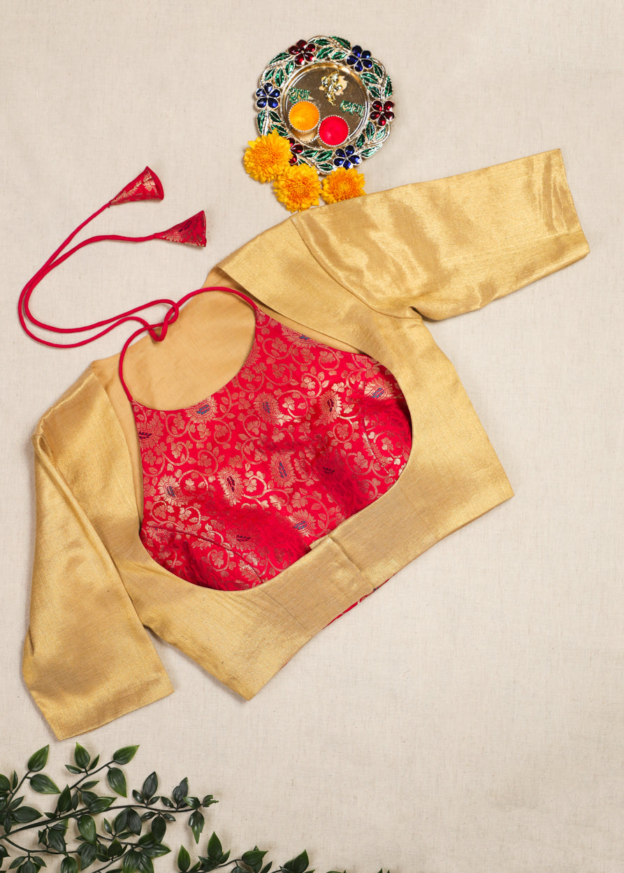 Rang dori- Brocade Blouse Set Red