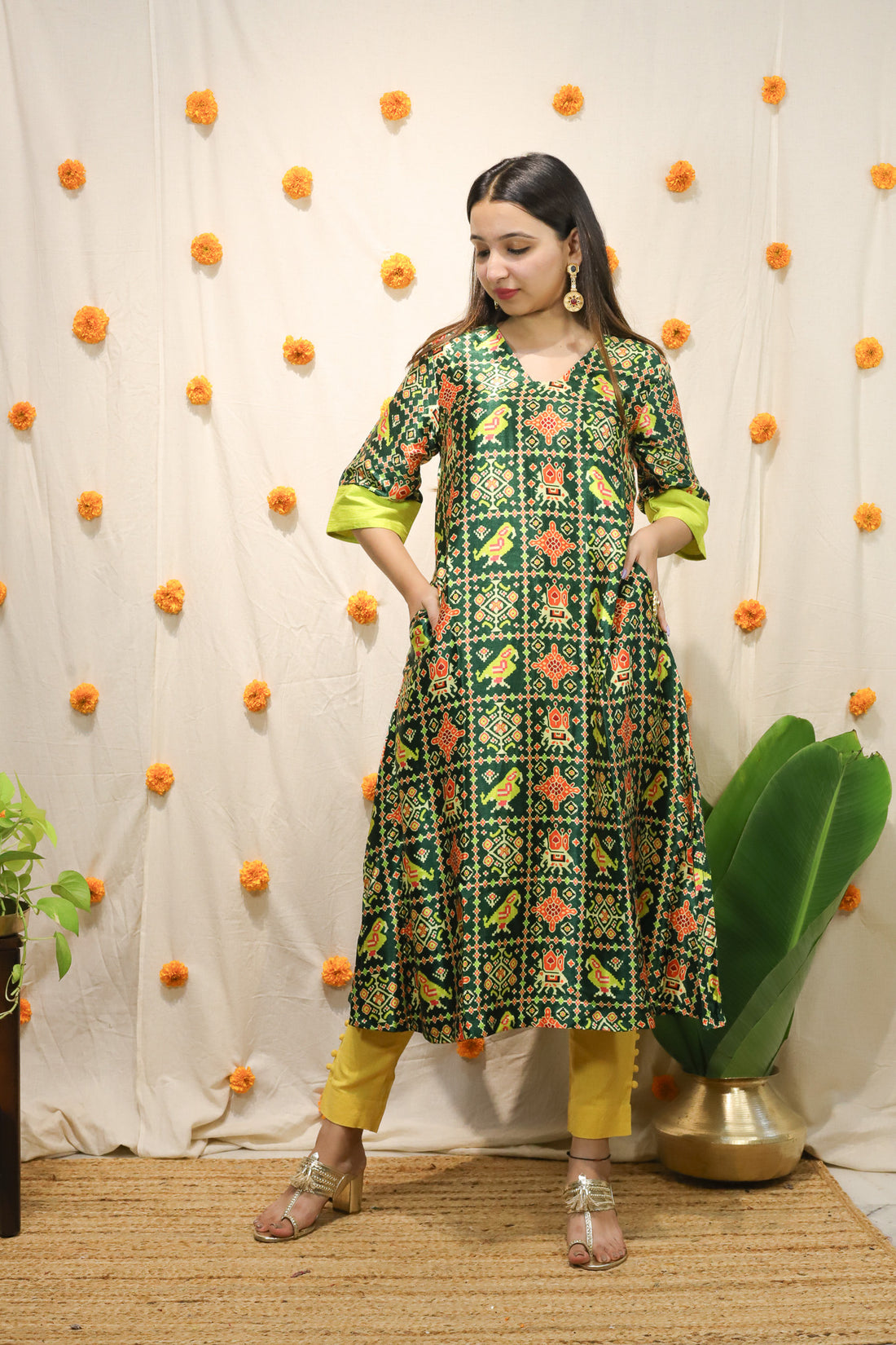 Rang Patola' - Mashroo Silk Kurti Green