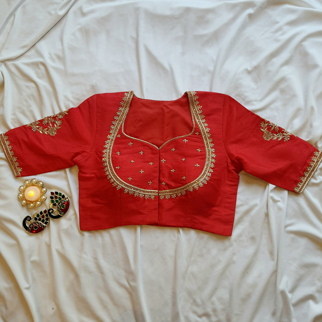 "Sunahara Dhaaga" Pure Raw Silk Embroiderd Red Blouse