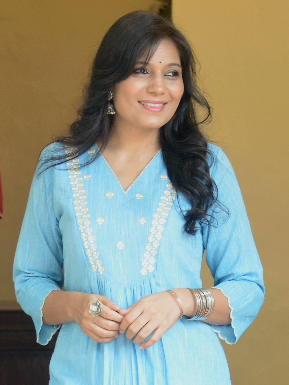 'Dastkari' Cotton Embroidered Kurti Denim Blue