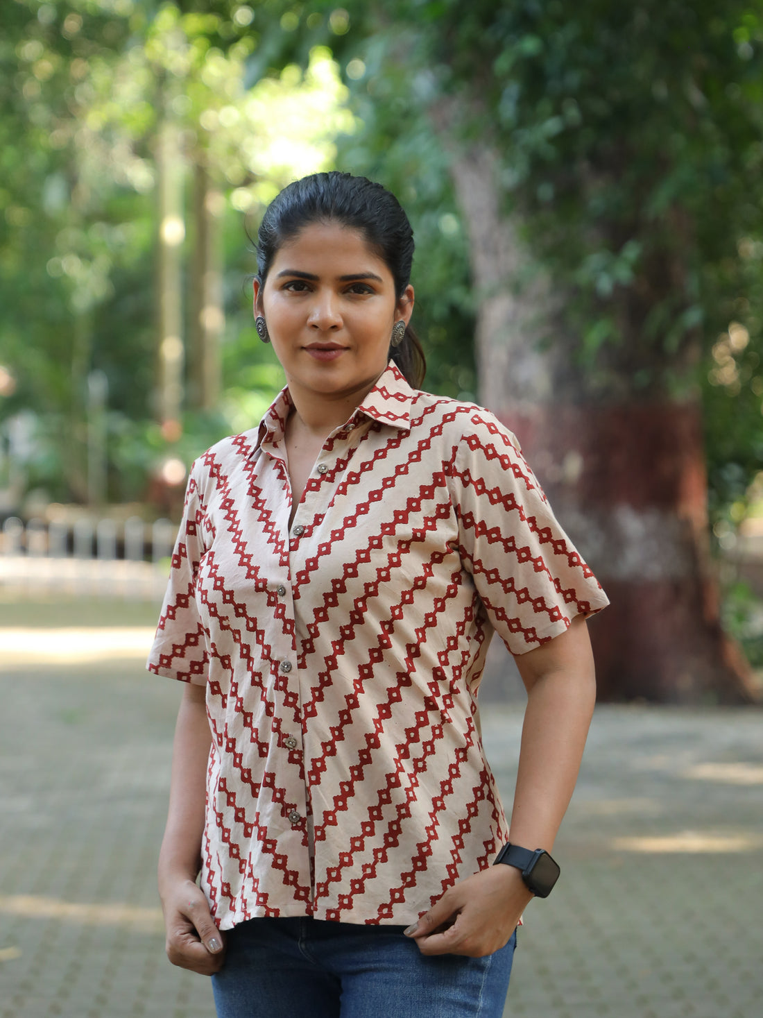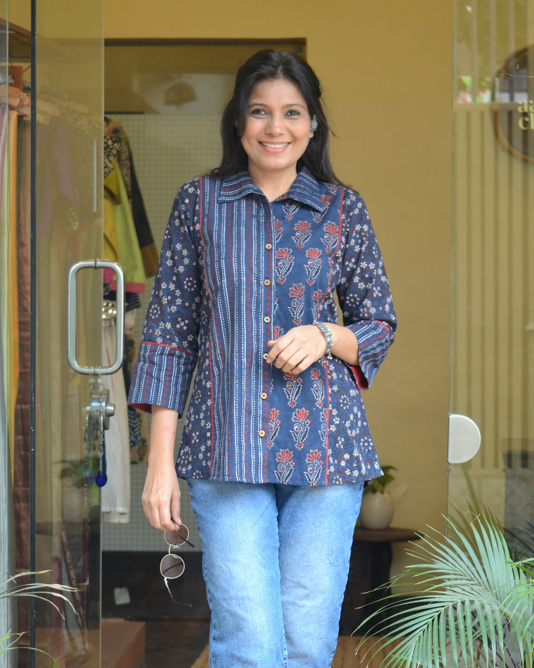 This beautiful cotton shirt blends tradition with modern simplicity. It features a hand-blocked Ajrakh print...