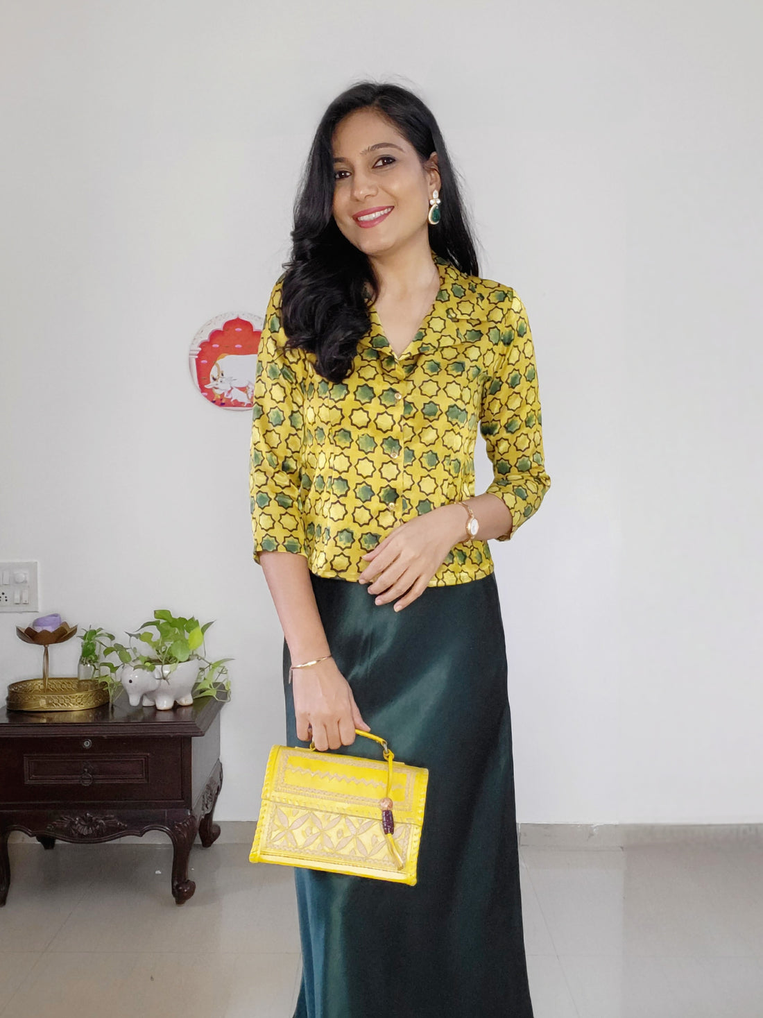 Shine On'-Mashroo Silk Ajrakh Skirt Top Set Yellow