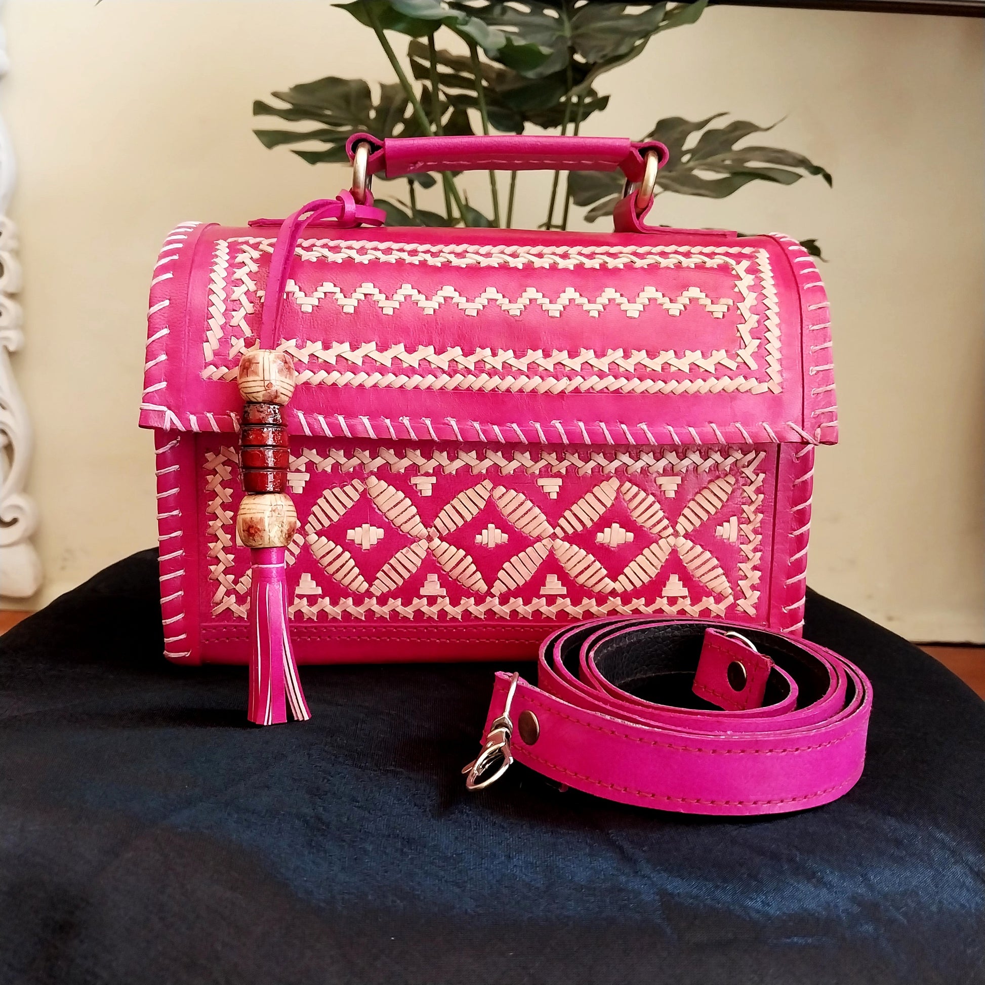 Leather embroiderd hand embroiderd hand bag can be used as side silng.Dimensions: 6 inches (H) x 8.5inches (L) x 3.5 inches (W).Use a dry cotton cloth to dust the bag.