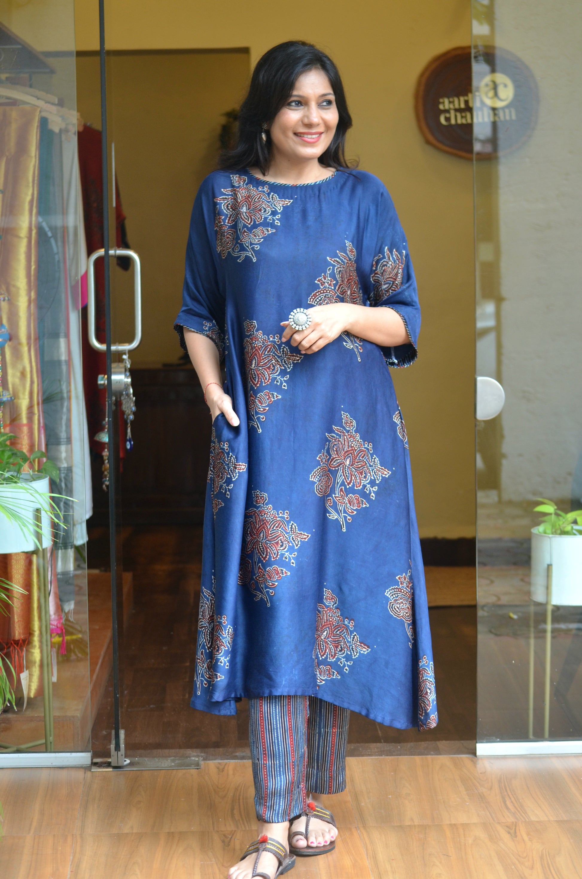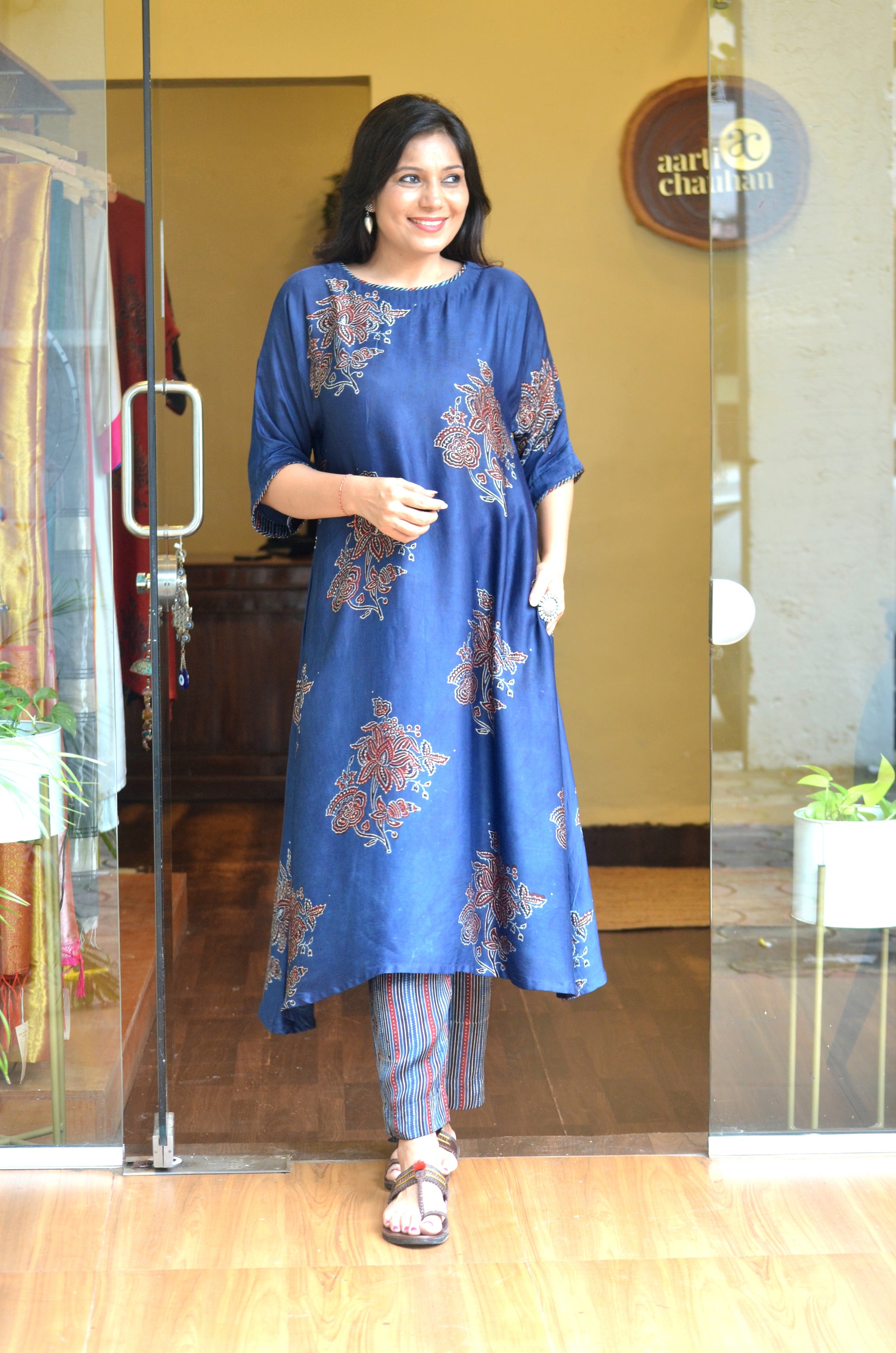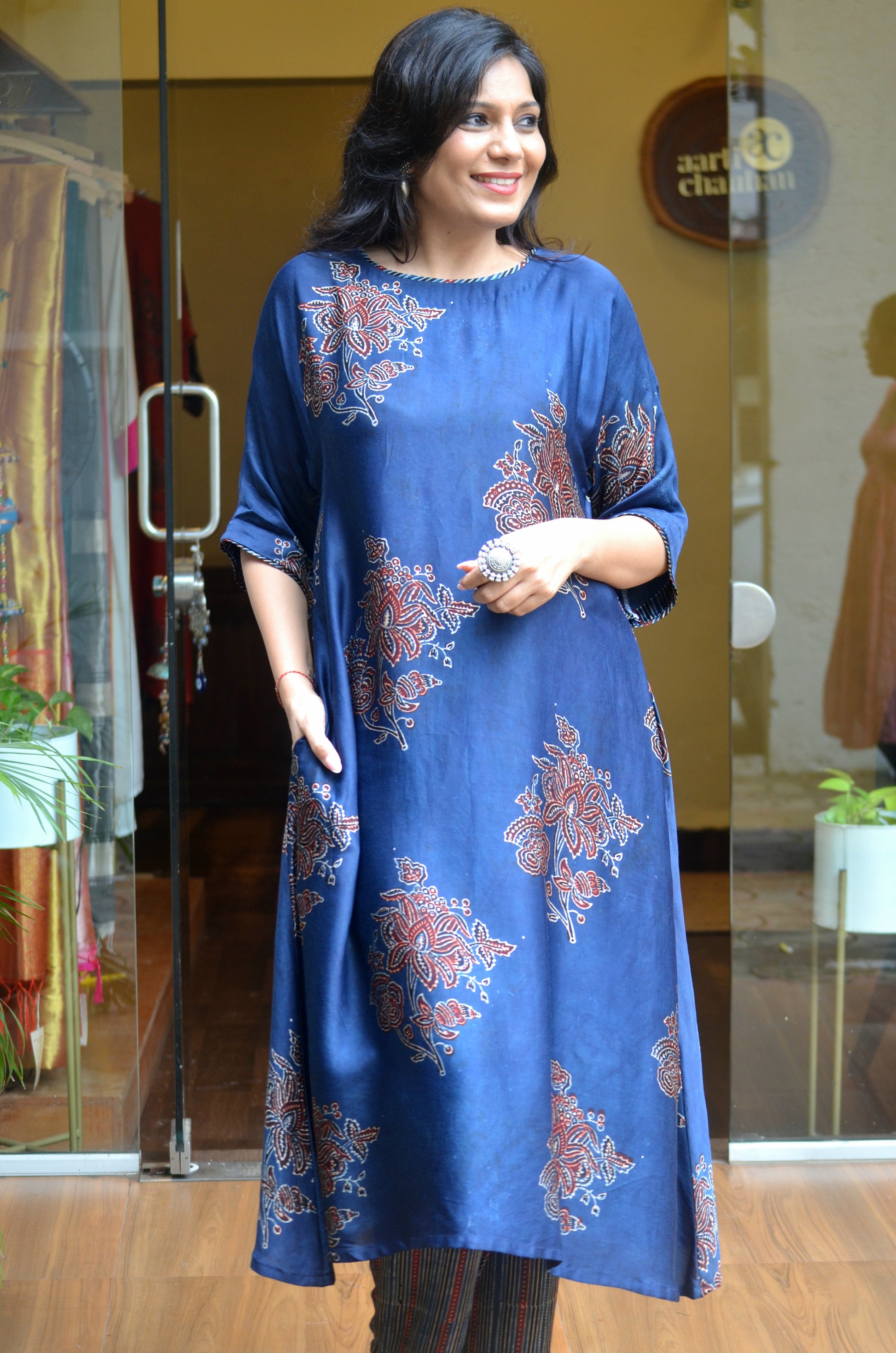 Meher-Modal Silk Relaxed Fit Kurti Indigo