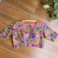 "Phulwari" Handpainted Bangalore Silk Hand Embroidered Blouse - Magenta