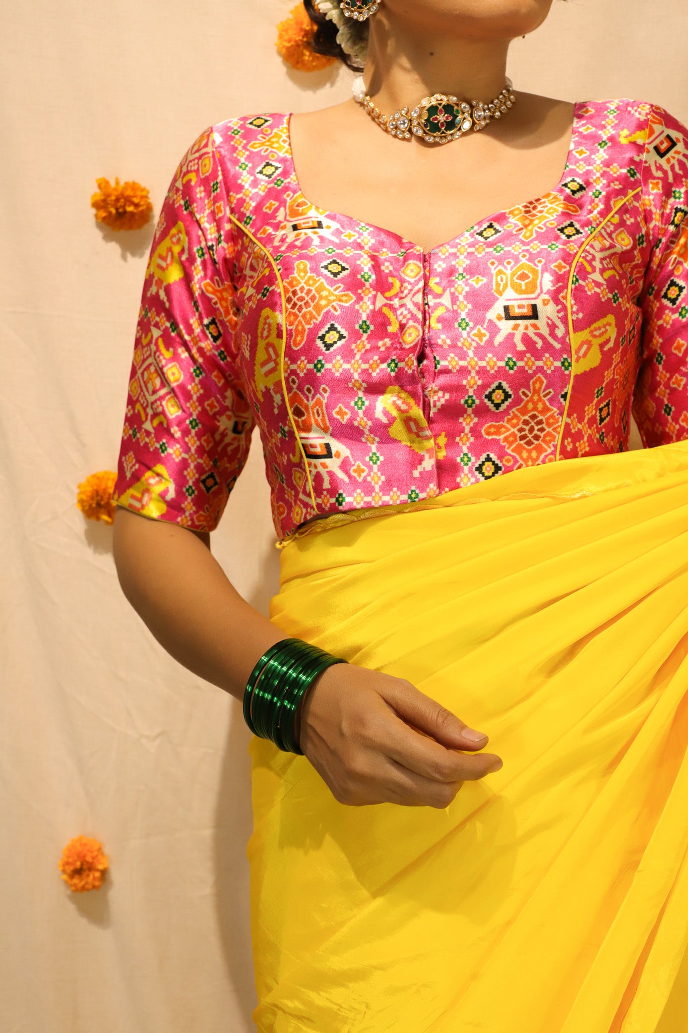 Discover the elegance of the Rang Patola collection—an exclusive range of Mashroo silk blouses adorned with intricate Patola prints. Designed with festive celebrations in mind, these blouses blend the heritage of traditional motifs with the luxurious feel of Mashroo silk, offering a perfect combination of comfort and style. Each blouse in this collection is crafted to elevate your festive look, and can be effortlessly paired with pure crepe sarees, as shown in our website images. The striking contrast of Patola prints and the fluid drape of crepe sarees creates a stunning ensemble, perfect for making a statement at any festive occasion.