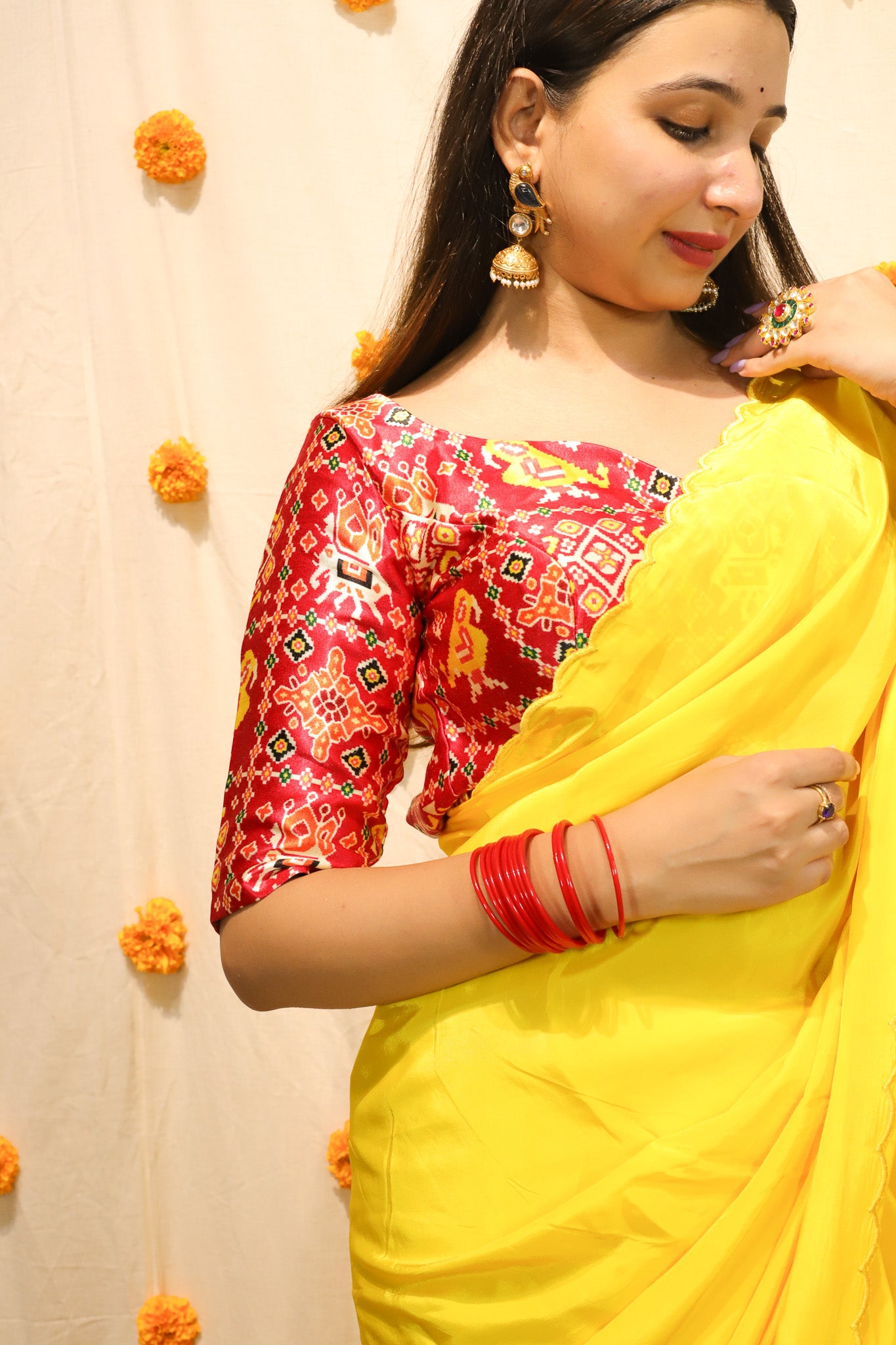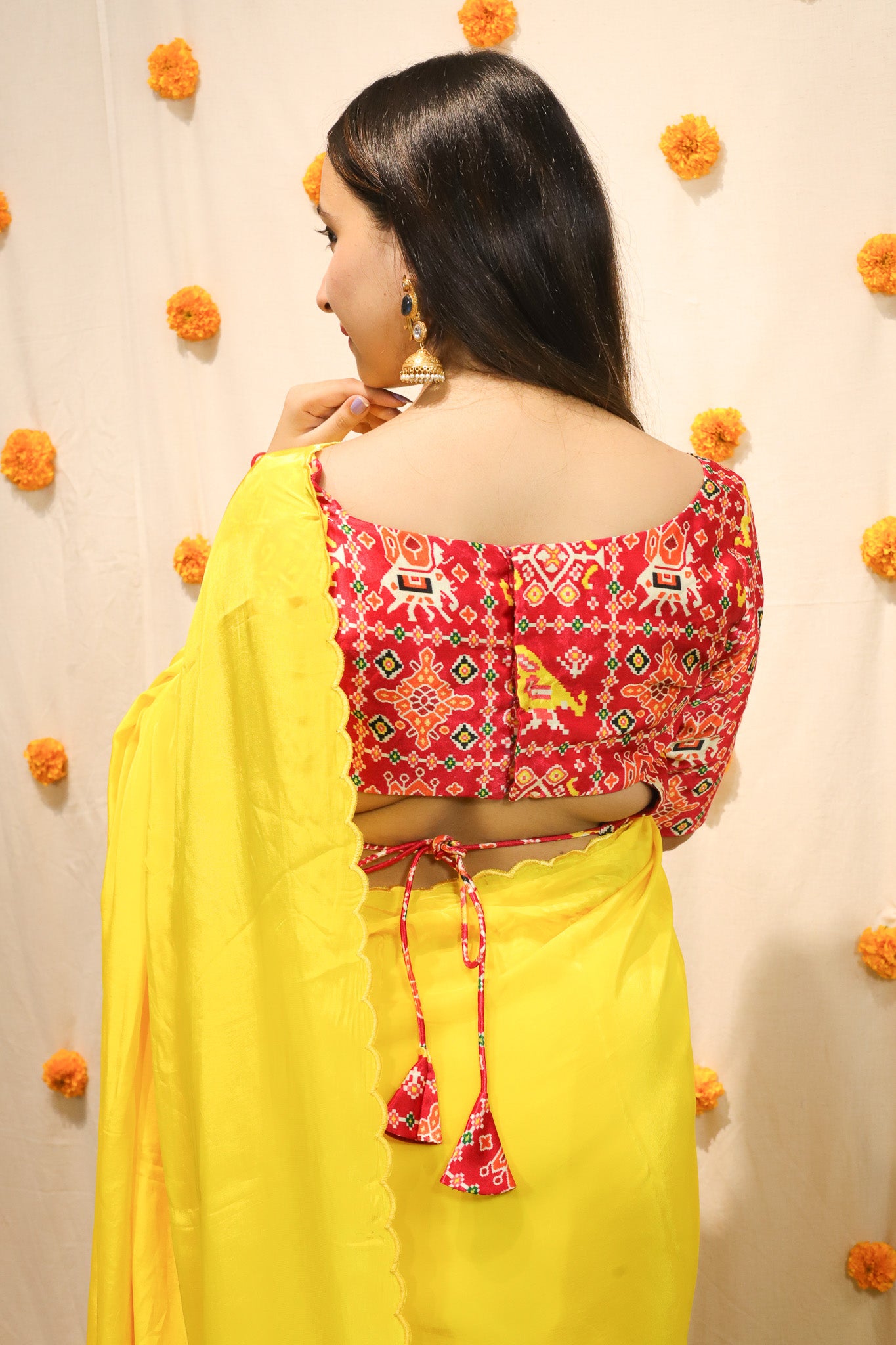 Discover the elegance of the Rang Patola collection—an exclusive range of Mashroo silk blouses adorned with intricate Patola prints. Designed with festive celebrations in mind, these blouses blend the heritage of traditional motifs with the luxurious feel of Mashroo silk, offering a perfect combination of comfort and style. Each blouse in this collection is crafted to elevate your festive look, and can be effortlessly paired with pure crepe sarees, as shown in our website images. The striking contrast of Patola prints and the fluid drape of crepe sarees creates a stunning ensemble, perfect for making a statement at any festive occasion.