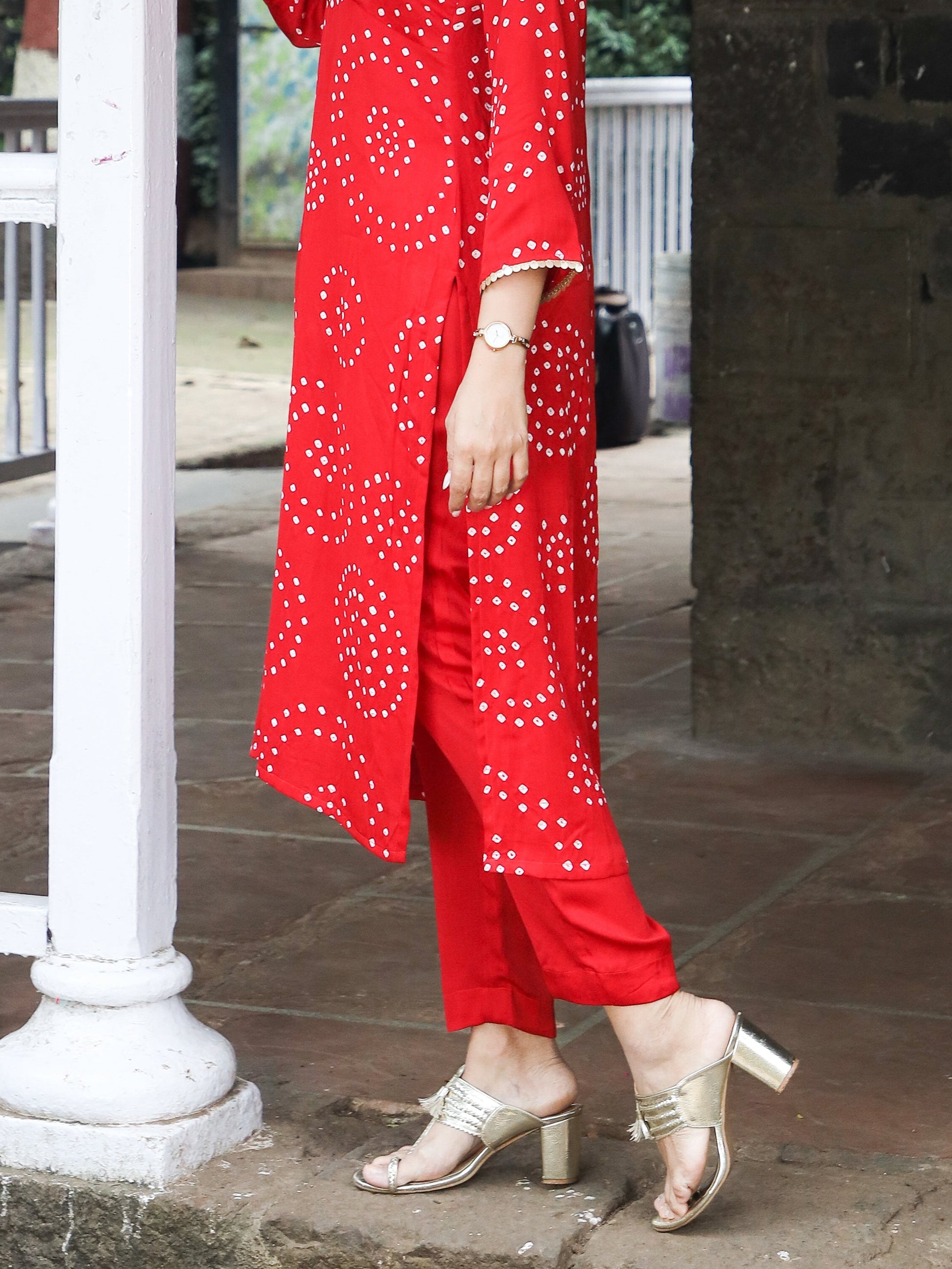 This rich red colure pant is crafted from luxurious modal silk fabric, offering a soft sheen and fluid drape for all-day comfort. The design features a half-belt and half-elastic waistband for a comfortable yet structured fit. With side pockets for functionality, this pant pairs perfectly with kurtas or tunics for a refined and effortless look.