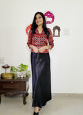 This beautiful article is made out of premium mashroo silk fabric which is printed with ajrakh hand blocked printing technic. Pigments/colors used to print this fabrics is natural made out of vegetables. Stitched article is having margins inside. Dry cleaning is preferred. Colors may look slightly different than original due to digital photography.