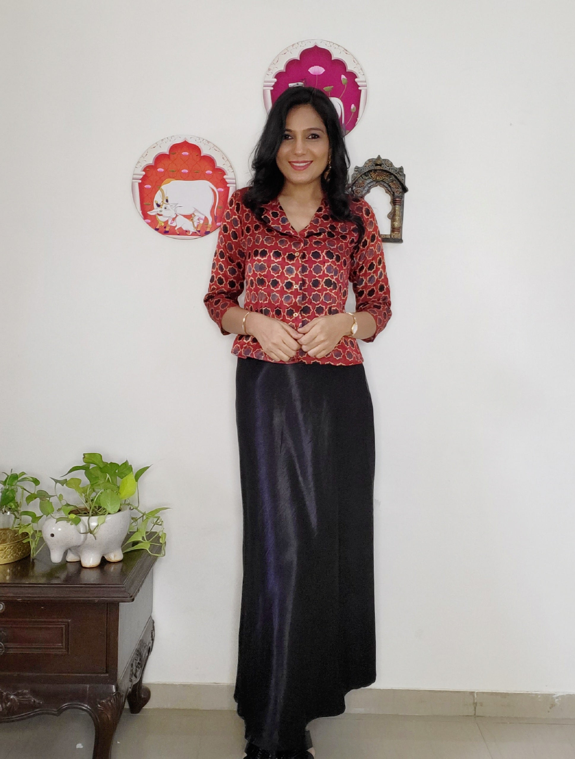 Shine On'-Mashroo Silk Ajrakh Skirt Top Set Rust