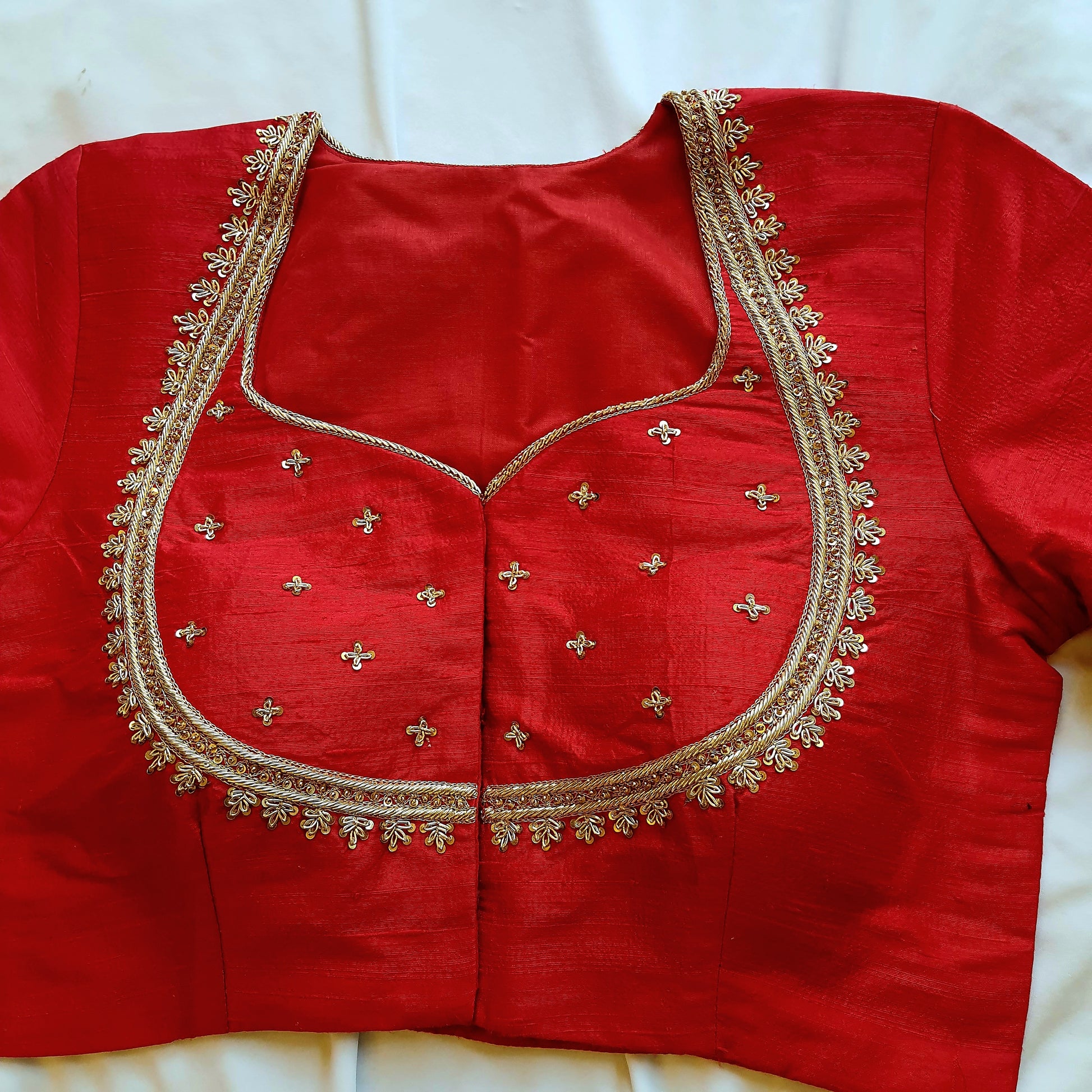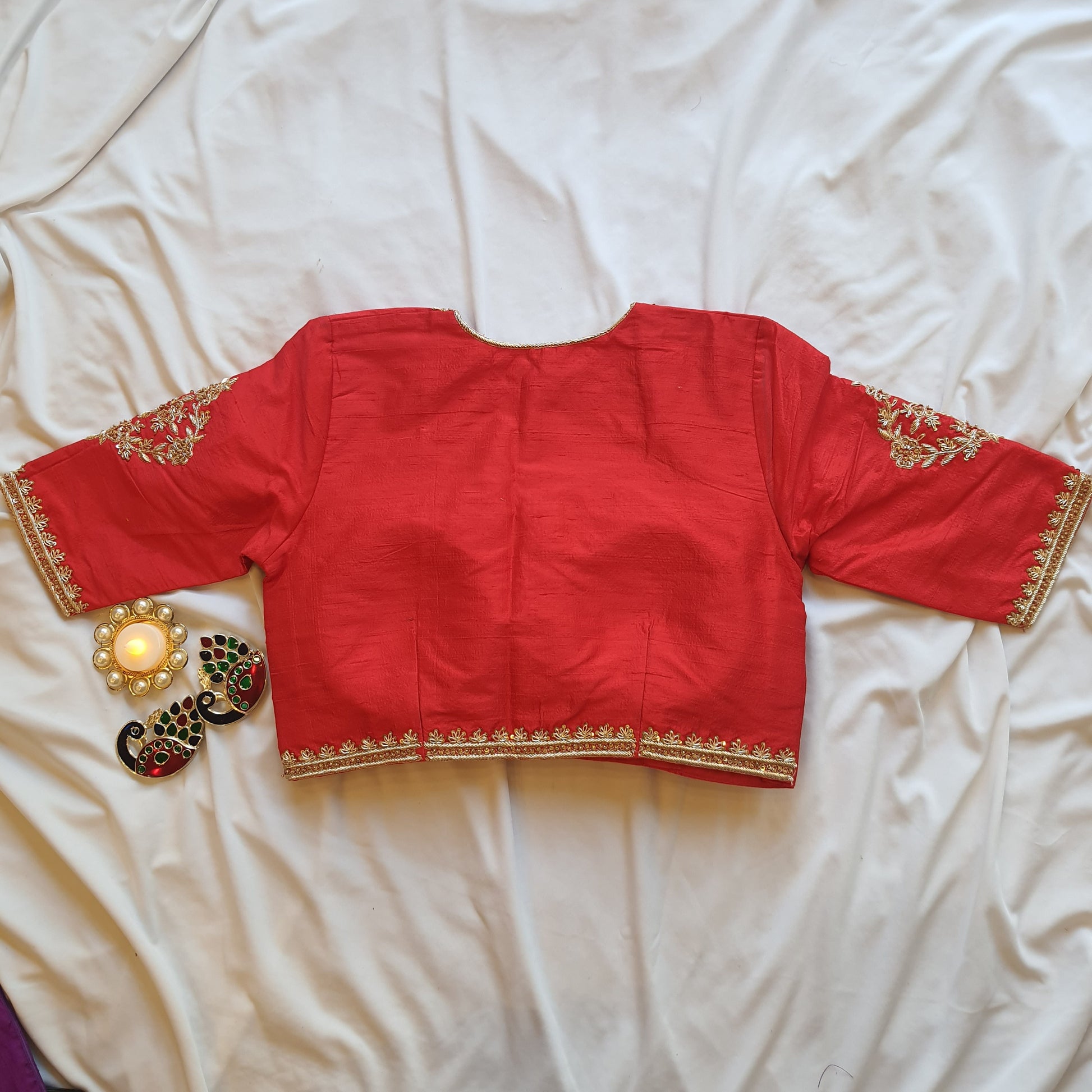 "Sunahara Dhaaga" Pure Raw Silk Embroiderd Red Blouse