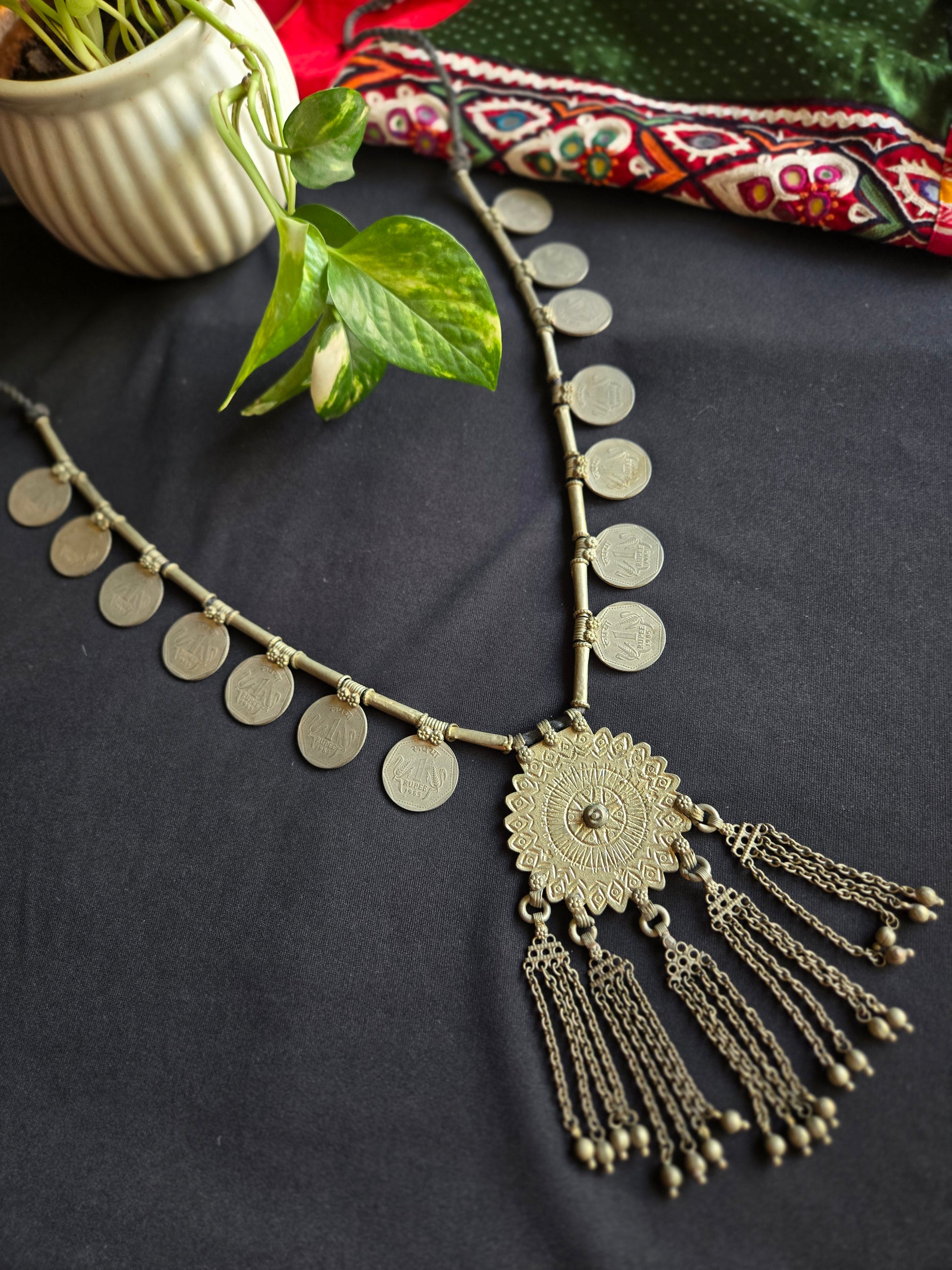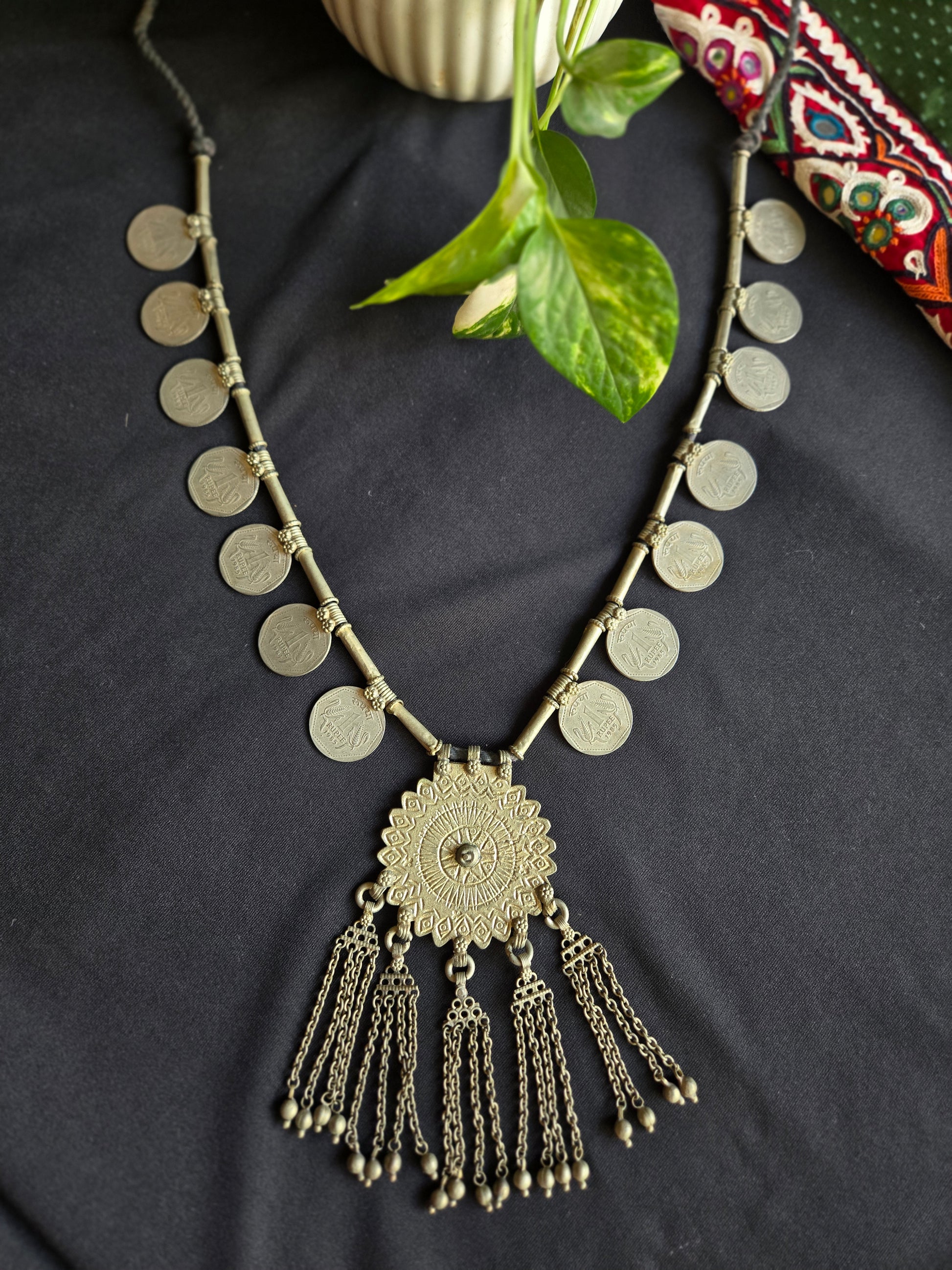 Vintage Afghani Long Coin Necklace